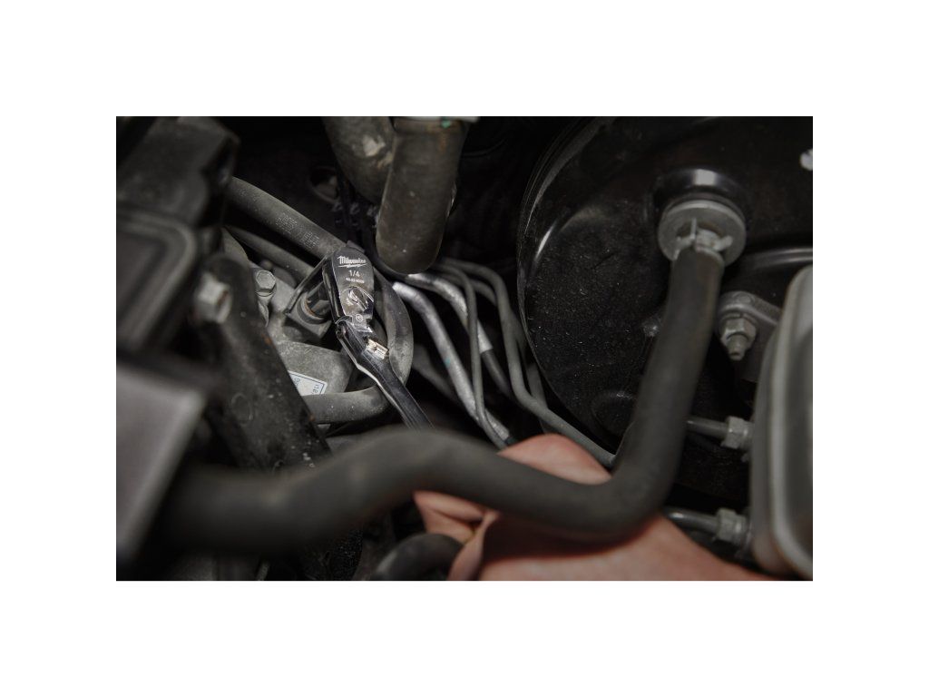 - Štíhlý profil hlavy ráčny se zapuštěnou páčkou pro volbu směru otáčení nabízí lepší přístupnost.
