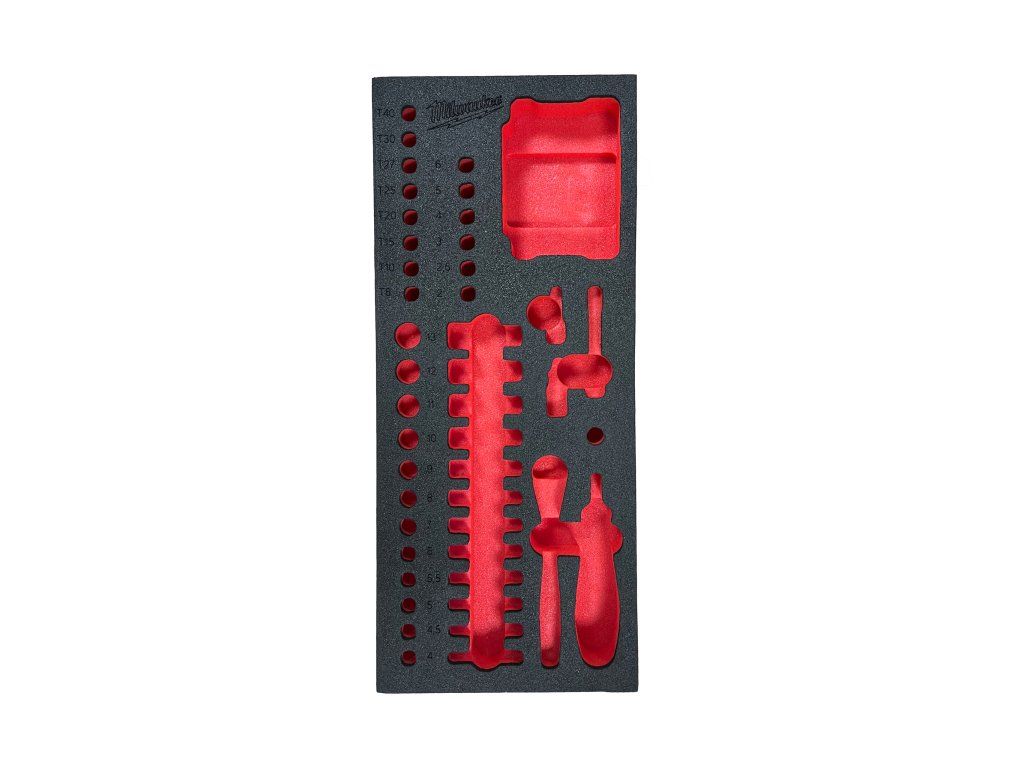 - Prémiová pěna pro delší životnost, laserem vyřezávané velikosti pro snadnou a rychlou identifikaci velikosti a červené pozadí pro rychlou identifikaci chybějícího nářadí.