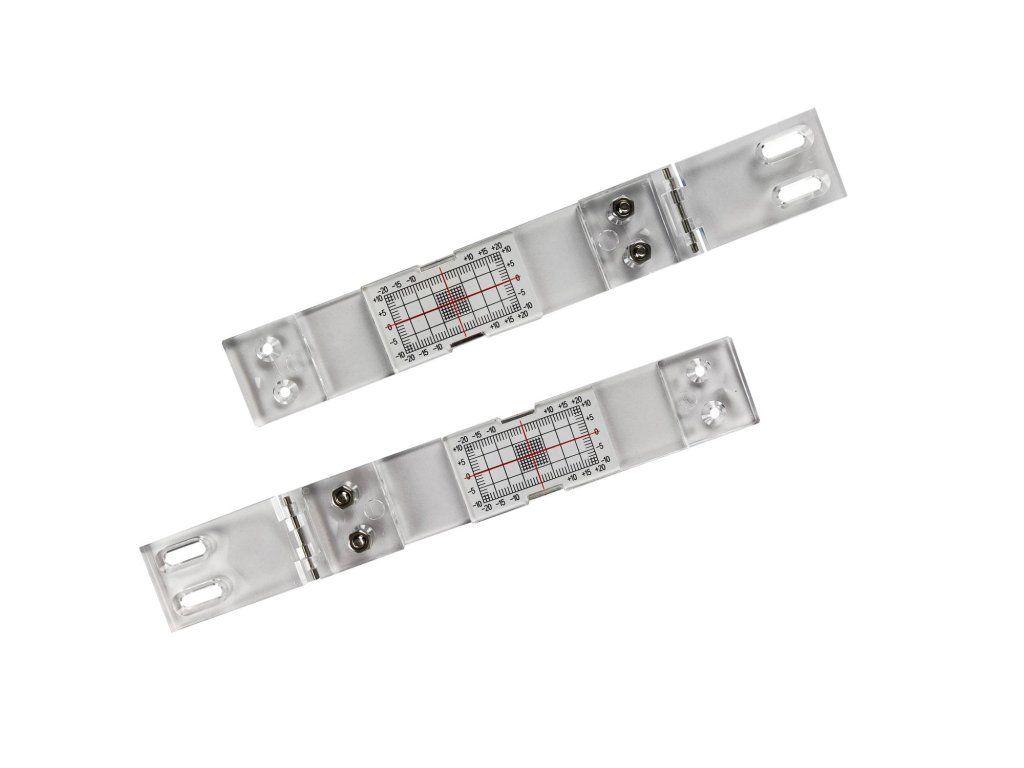 Sada obsahuje 2 rovné měřiče trhlin, dva držáky pro montáž na úhelníky, dva sáčky s lepidlem.
