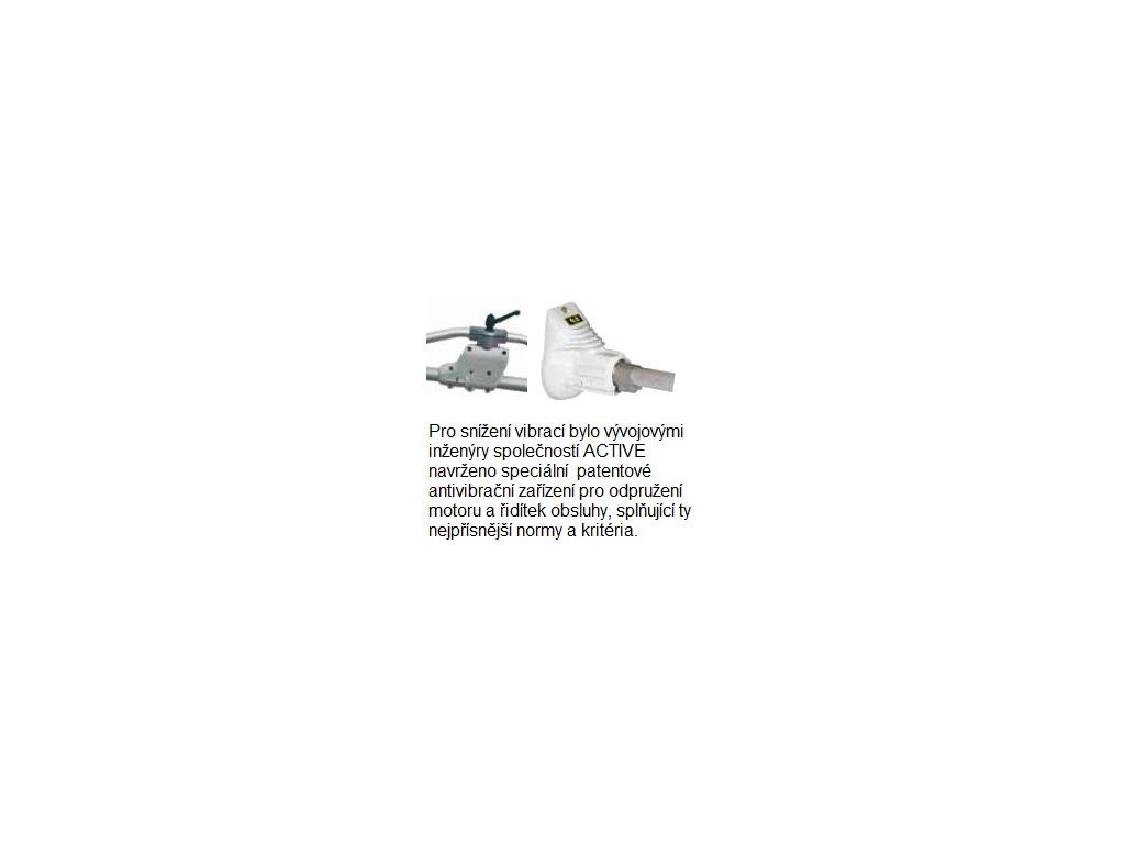 Pro snížení vibrací bylo vývojovými inženýry společnosti ACTIVE navrženo speciální patentové antivibrační zařízení pro odpružení motoru a řidítek obsluhy, splňující ty nejpřísnější normy a kritéria.