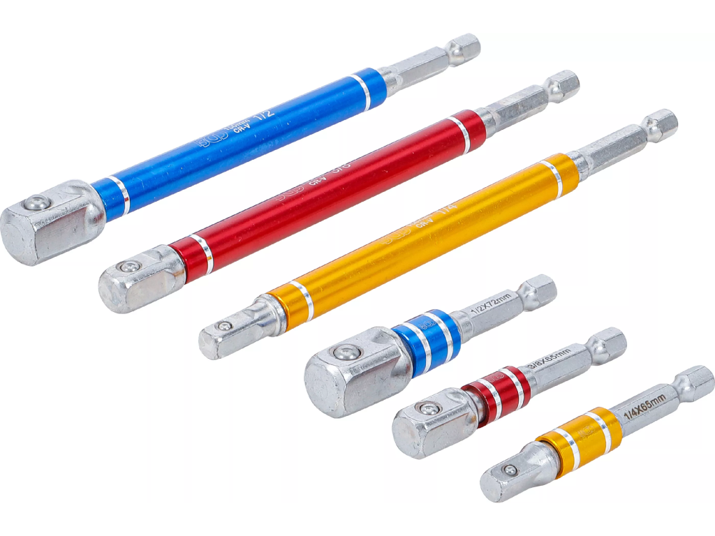 Adaptéry do vrtačky, sada 6 ks, barevné, 1/4", 3/8" a 1/2" - B74424