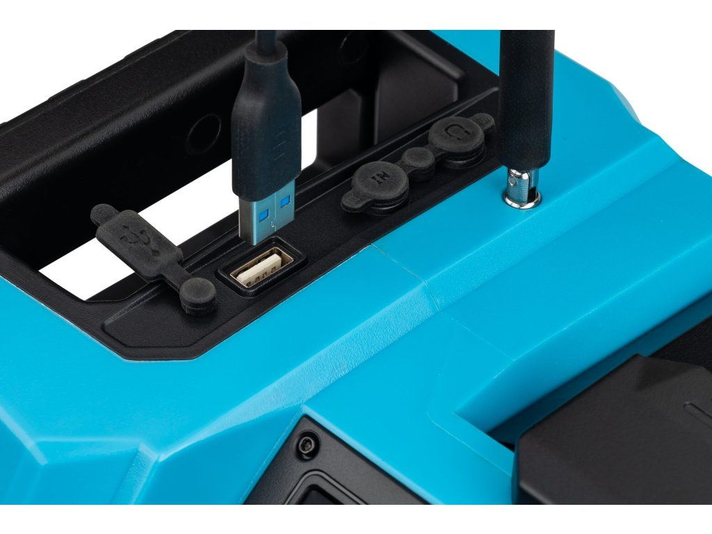 Podporuje DAB+ a FM s čistým stereo zvukem. Díky Bluetooth lze přehrávat hudbu ze smartphonu či tabletu, nechybí AUX vstup, USB port s funkcí nabíjení a LED světelný pruh signalizující provozní stav.