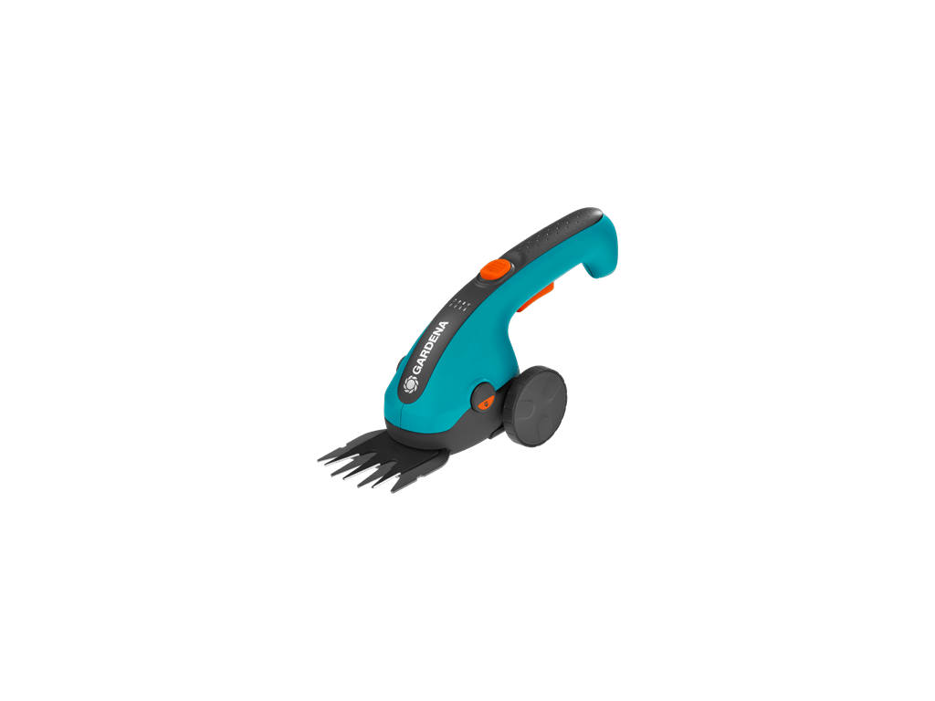Kolečka usnadňují vedení akumulátorových nůžek po trávě. Nůžky mají integrovanou, snadno udržovatelnou Li-Ion baterii s napětím 3,6 V a kapacitou 2,5 Ah.