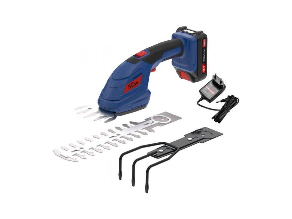 Akumulátorové nůžky 18 V ke stříhání živých plotů a keřů a zastřihování okrajů trávníku. Kompaktní a lehká konstrukce zaručuje pohodlnou manipulaci.