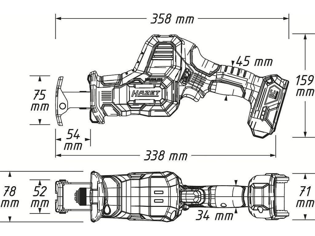 Konstrukce s bezkartáčovým BLDC motorem zajišťuje dlouhou životnost, nižší spotřebu energie a kompaktní rozměry. Otočný podklad pily a otočný pilový list usnadňují práci i v těžko přístupných místech.