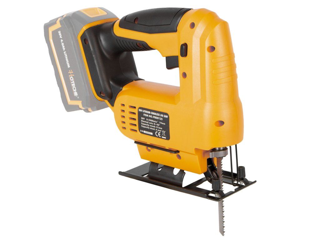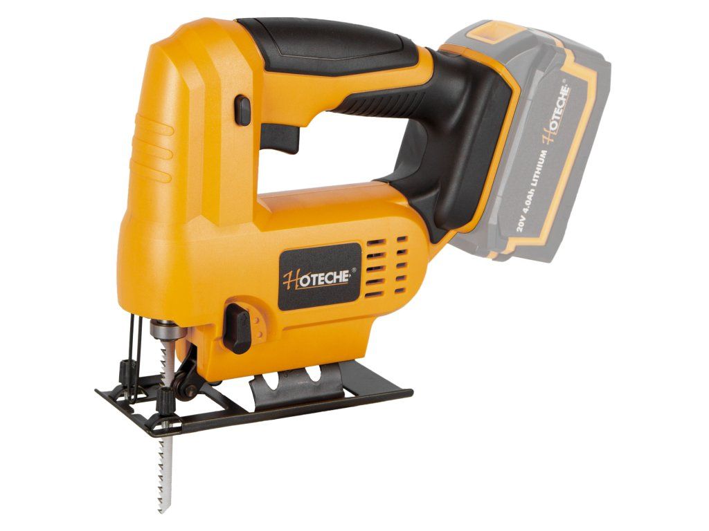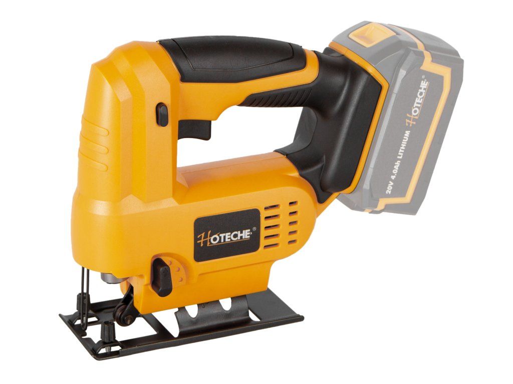 AKUmulátorová přímočará pila (přímočarka) od značky Hoteche napájena akumulátorem 20 V.