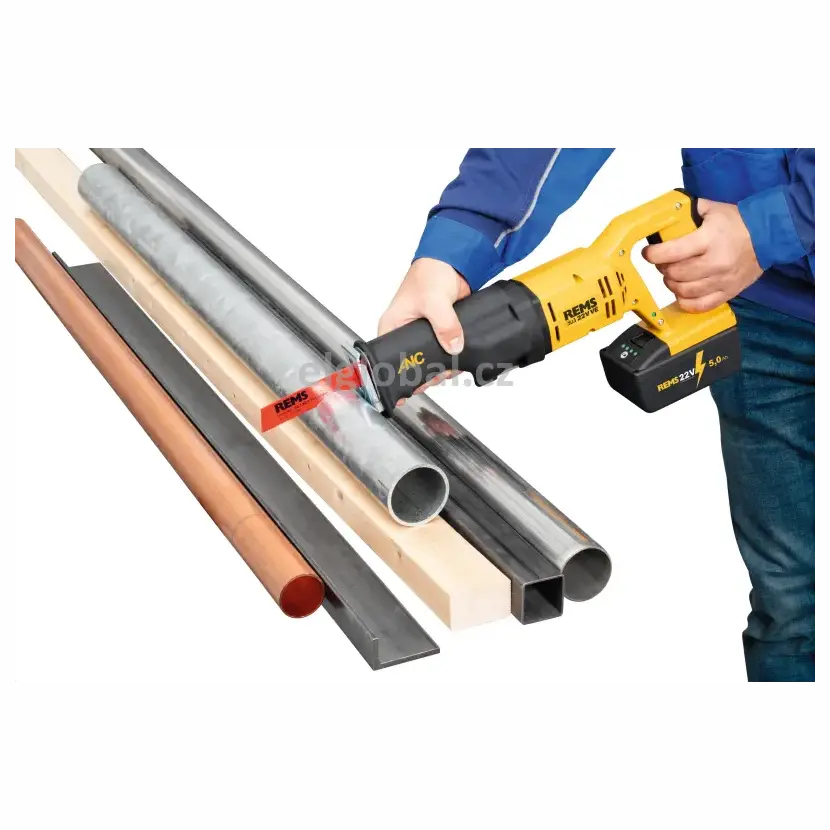 - Jen 1 univerzální pilový list REMS pro všechny práce řezání namísto mnoha různých pilových listů. S oboustranným úchytem, k řezání volně z ruky a k řezání s vodícím držákem
