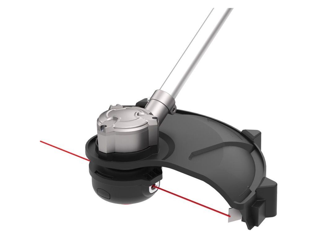 TIP-AUTOMATIC - poloautomatické odvíjení sekací struny - rychlé, pohodlné odstranění namotaných stébel trávy přepnutím otáček • žací nůž se třemi břity.