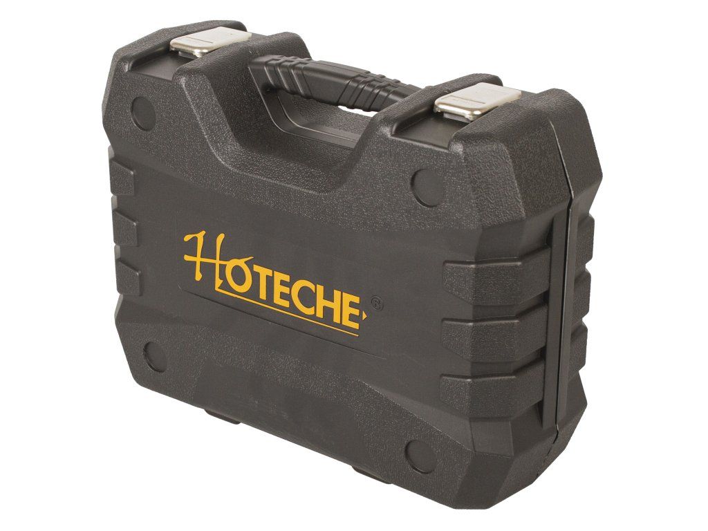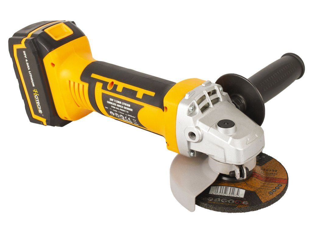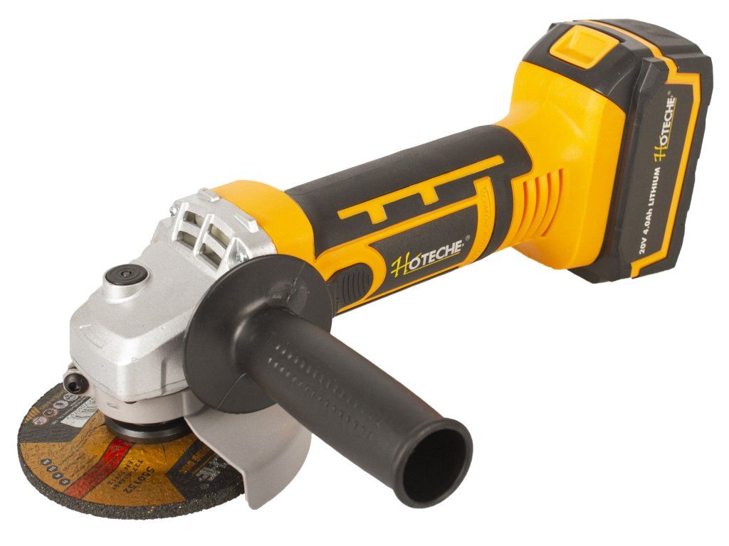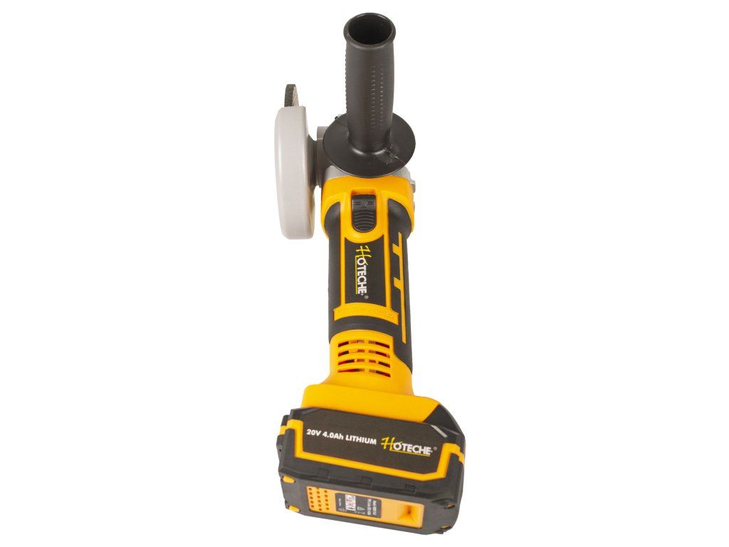 Kompaktní AKU úhlová bruska od značky Hoteche s výkonným motorem, který je schopen dosáhnout ve volnoběžných otáčkách až 8000 za minutu.
