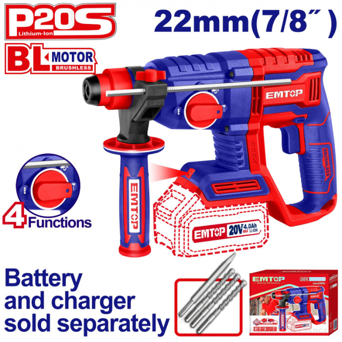 Parametry produktu  Aku vrtací a sekací kladivo 20V 22mm 2,0 J solo