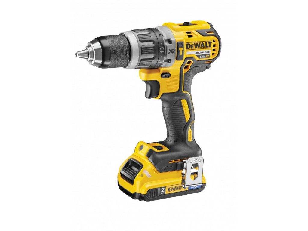 Kompaktní příklepová vrtačka/šroubovák 18 V XR Li-Ion je vybavena baterií XR Li-Ion s kapacitou 2,0 Ah.