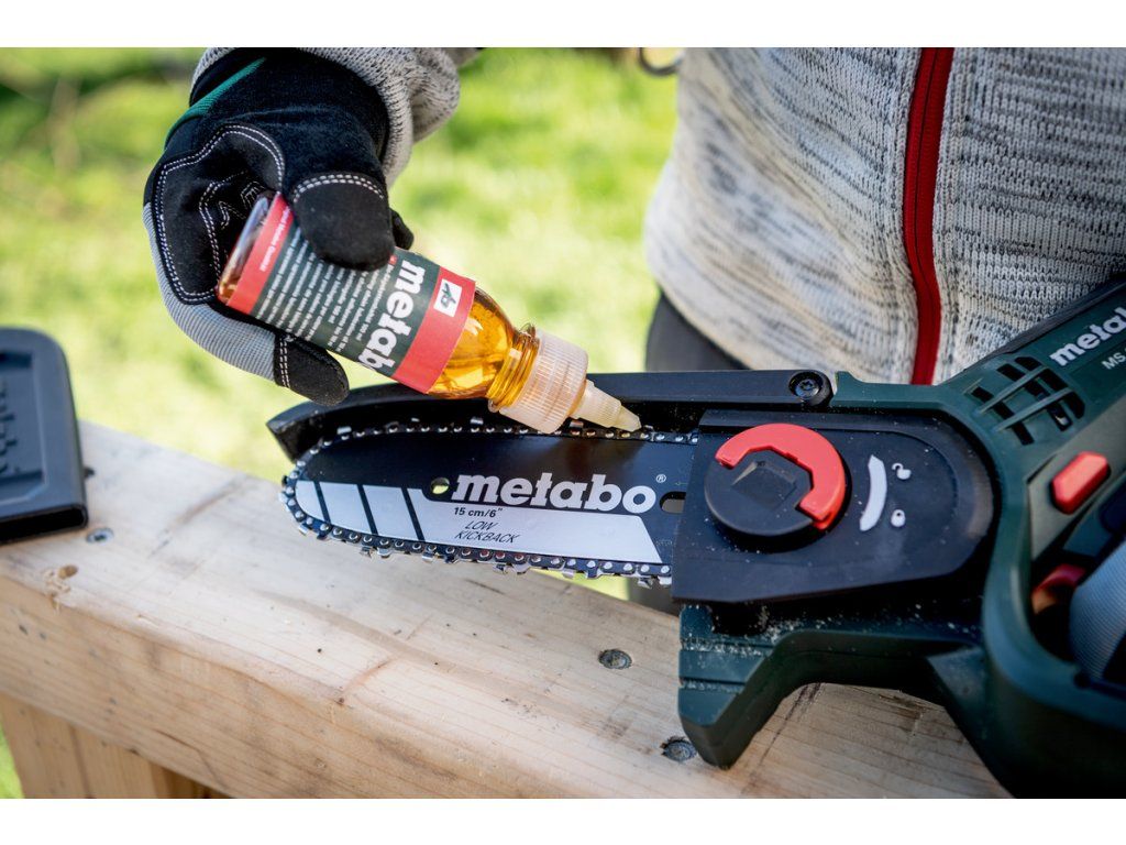 - V kombinaci s teleskopickou tyčí MS (příslušenství) lze mini řetězovou pilu používat jako vysoký prořezávač.