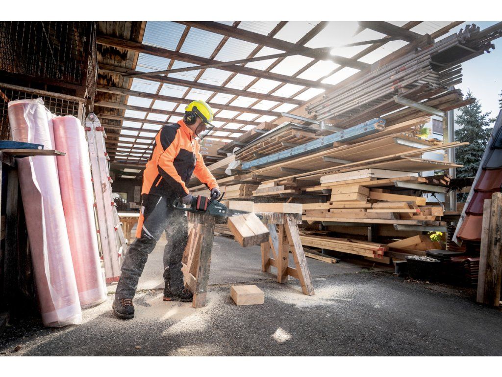 - Vysoký komfort při práci díky pogumované rukojeti, kompaktní konstrukci a nízké hmotnosti ve srovnání s benzínovými řetězovými pilami