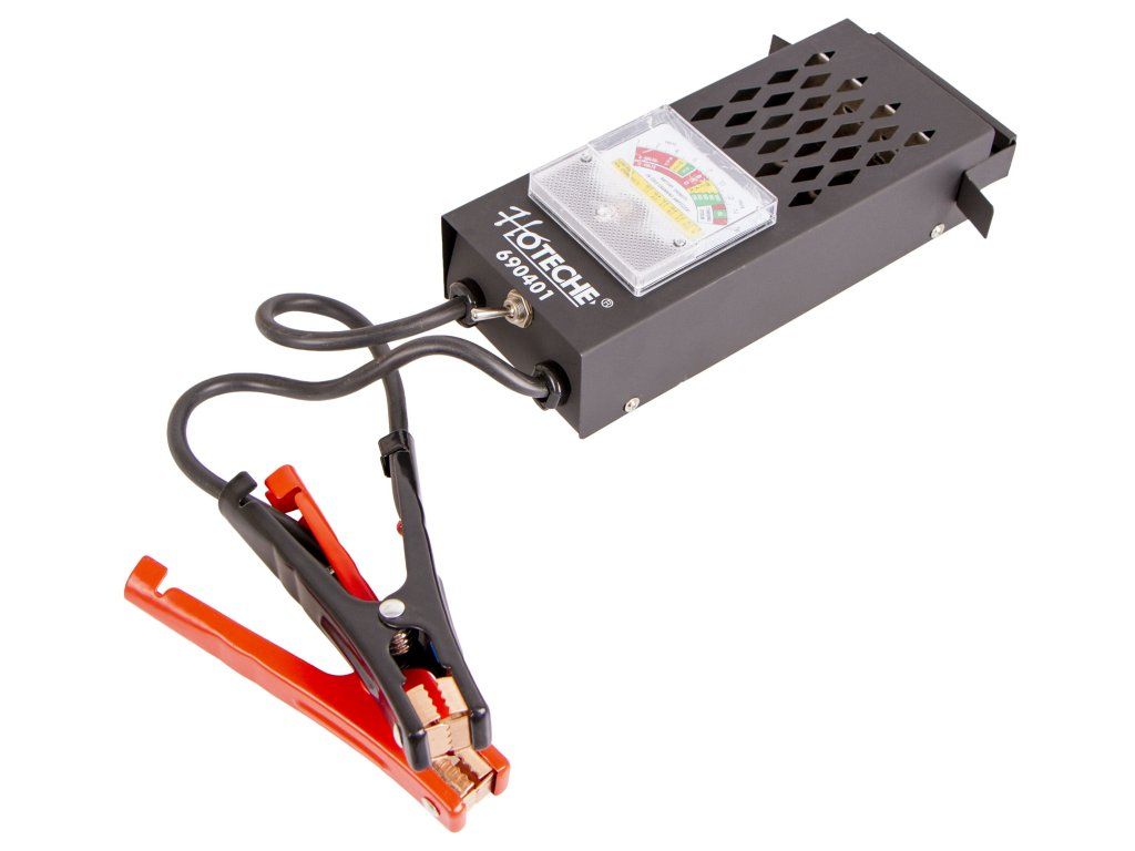 Analogový tester baterií od značky Hoteche s výsledkem měření do několika sekund.
