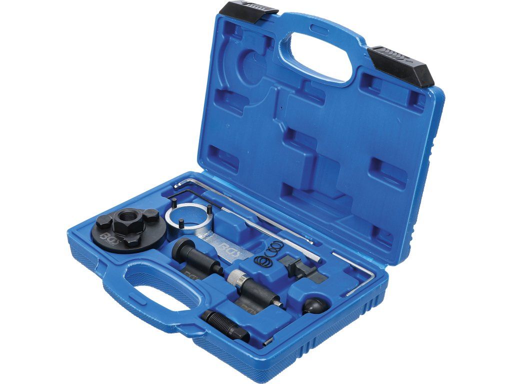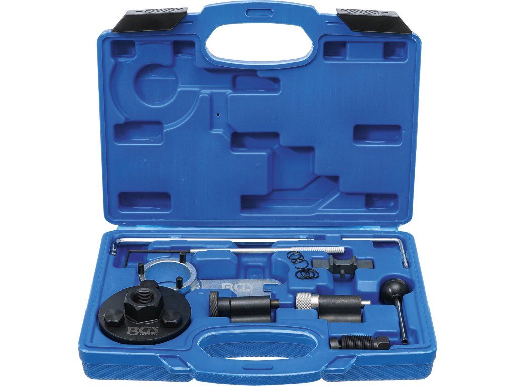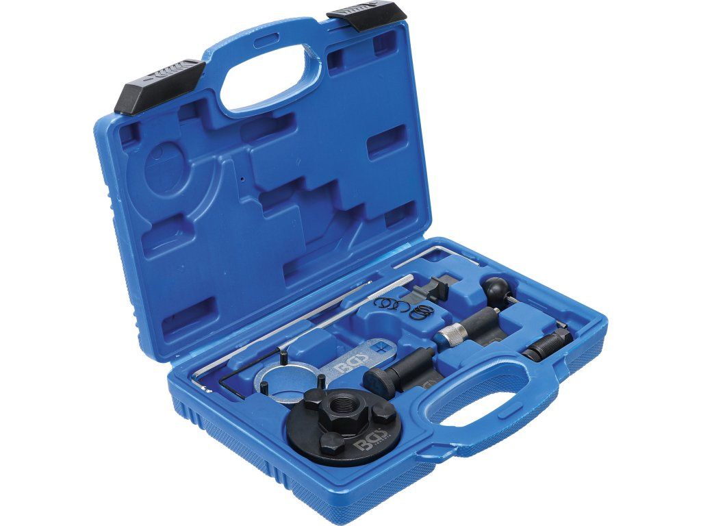 Sada obsahuje důležité nástroje pro kontrolu a nastavení dob řízení po výměně ozubeného řemene.