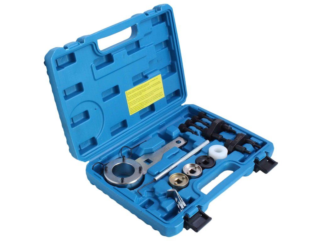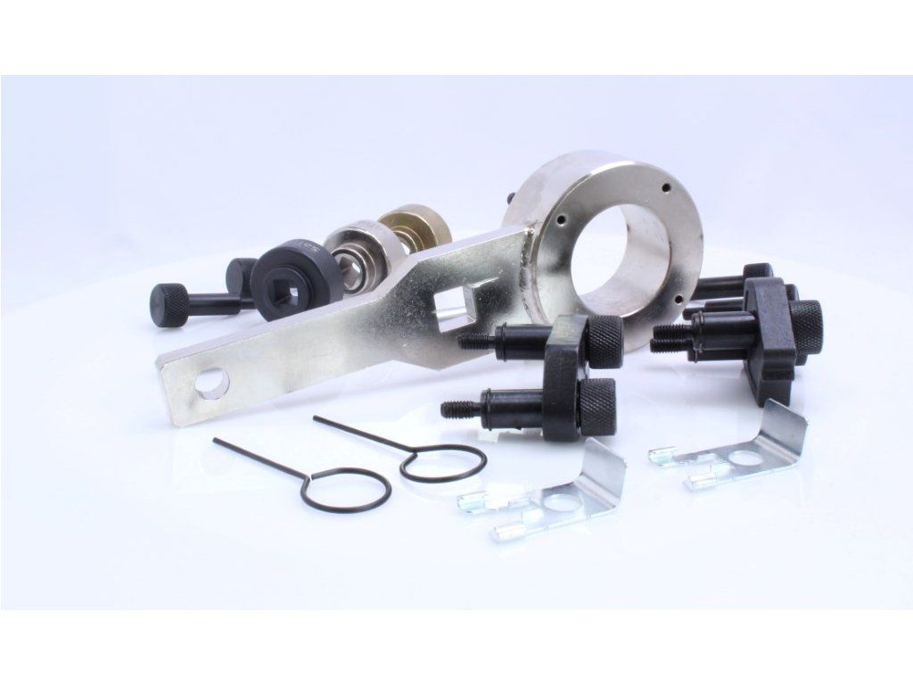 Obsahuje širokou škálu přípravků pro montáž a demontáž rozvodových komponent, včetně přítlačných dílů, unašečů, čepů a svorek potřebných pro práci s klikovým a vačkovým hřídelem.