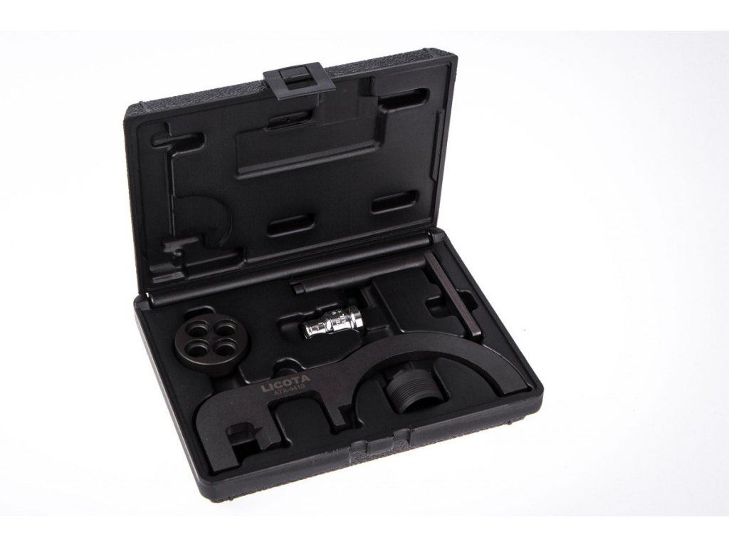 - Sada obsahuje přípravky pro aretaci setrvačníku, nastavení vačkové hřídele, otáčení klikové hřídele a pro čerpadlo.