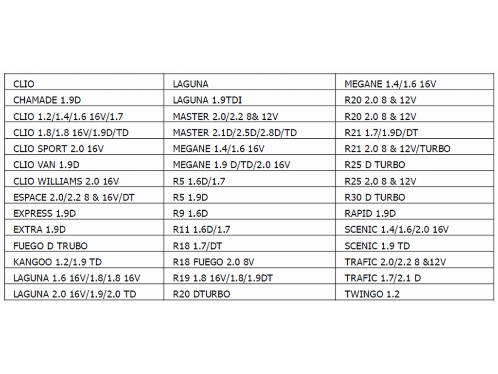 - Pro vozy RENAULT s benzínovými motory.