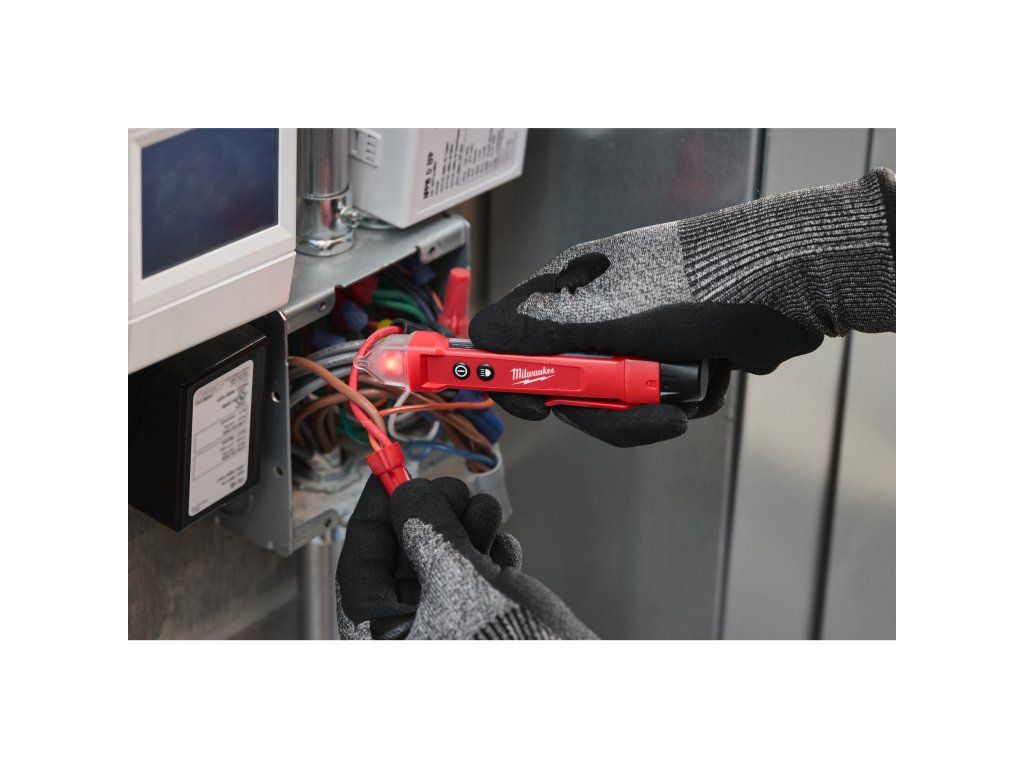 - Vysoce viditelná červená LED signalizuje přítomnost napětí