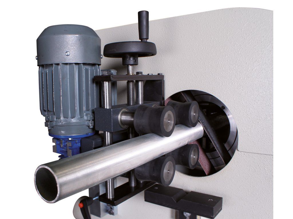 Pro broušení trubek i plných tyčí s plynule nastavitelným posuvem i rychlostí brusného pásu.