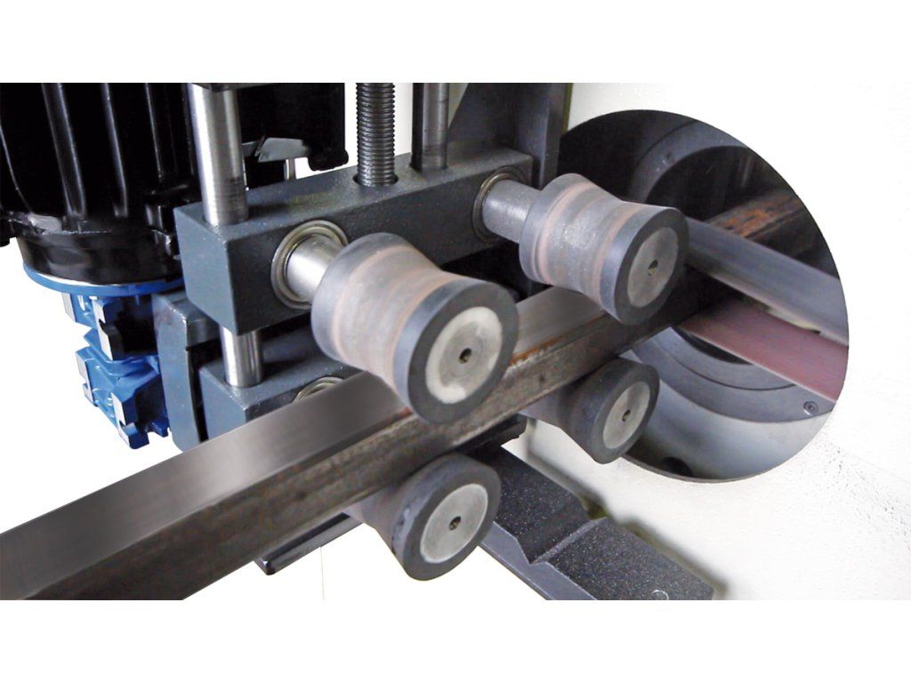 - Podávací jednotka s pryžovými válečky zajišťuje bezpečnou přepravu obrobku
