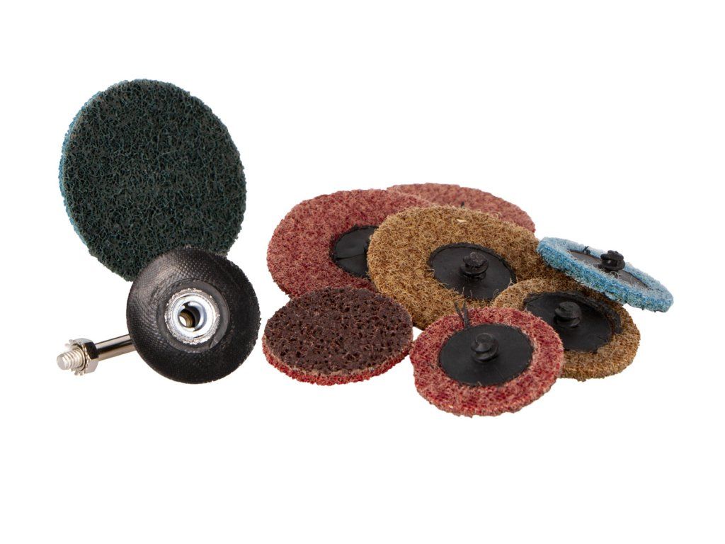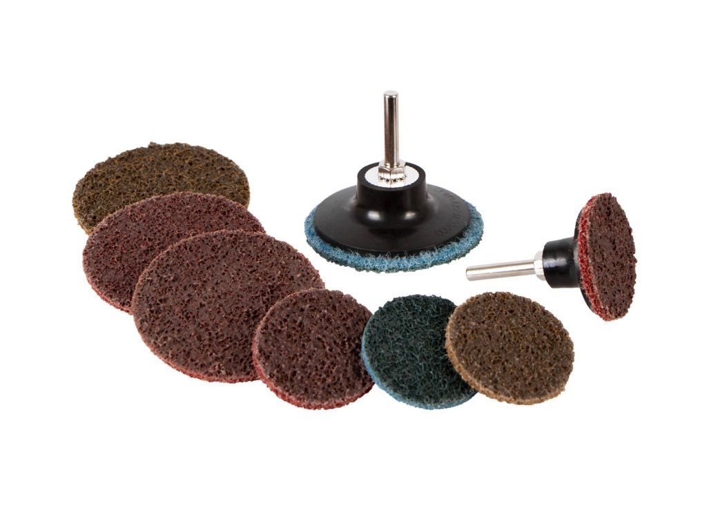 Balení obsahuje kotouče o průměrech 75 a 50 mm o třech různých zrnitostech: hrubé, střední, jemné a dva unašeče pro upnutí do vrtačky.