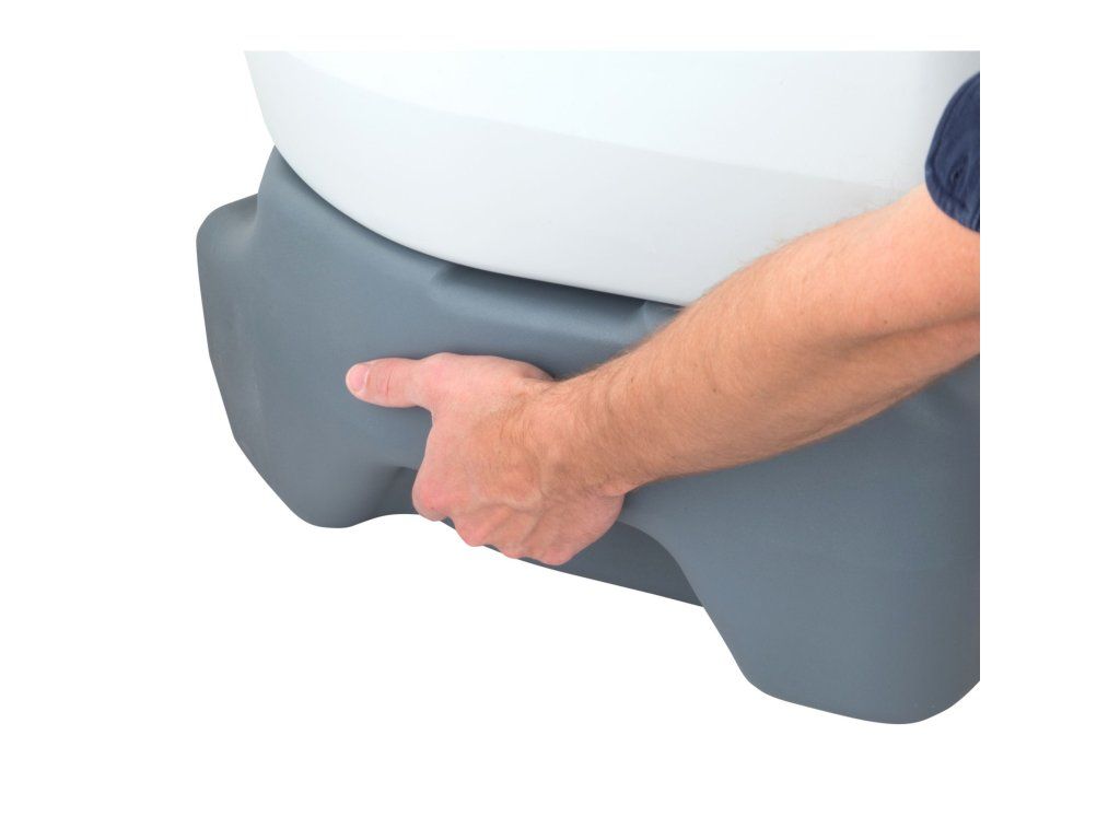 Chemická toaleta tvořená dvěma snadno a rychle oddělitelnými zásobníky. Horní je určen pro vodu na splachování a spodní pro odpad. Antibakteriální prkénko a mísa odolávají plísním a eliminují pachy. Pro větší pohodlí je sedací plocha zvýšena na 41 cm a má také rozšířené sezení. Extra silný spojovací zámek a pružinový systém Lock & Spring. Madla vzadu a po stranách pro snadnou manipulaci. Vysoce kvalitní pístové čerpadlo.Doplňkové parametry