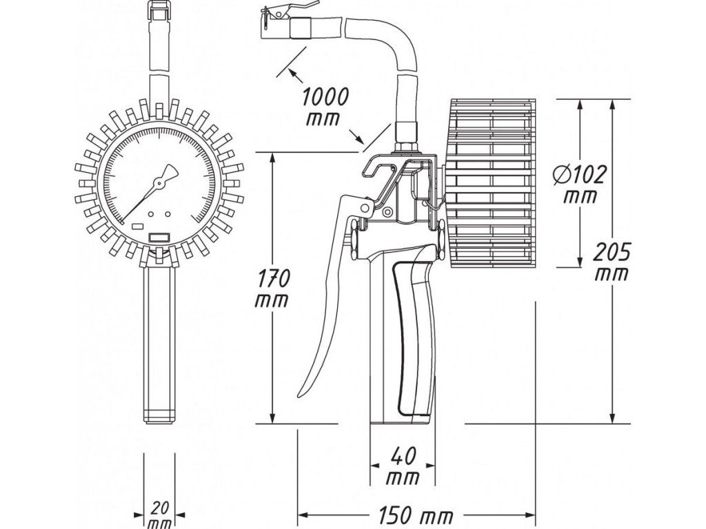 Hustič pneu s manometrem určený pro přesné plnění a kontrolu tlaku pneumatik v dílnách, servisech i garážích.