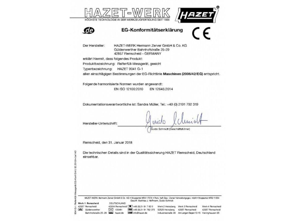 Cejchovaný hustič pneu s manometrem 9041G-1 HAZET - HA212385