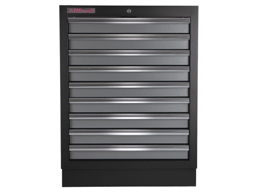 Celokovová dílenská skříň s 9-ti zásuvkami zajišťuje maximální přehled, úložnou kapacitu a odolnost i v náročném provozu.