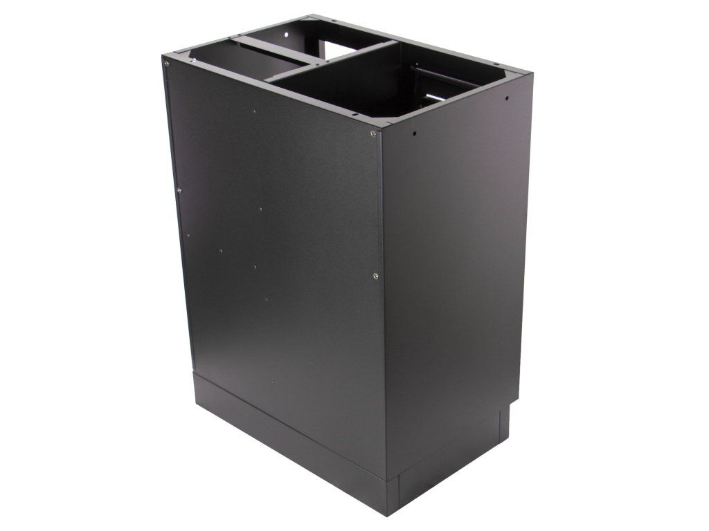 Celokovová dílenská skříňka. Skříňka obsahuje odpadkový koš a držák na role papíru, je vhodná do profesionálních servisů, dílen, ale také do garáží.