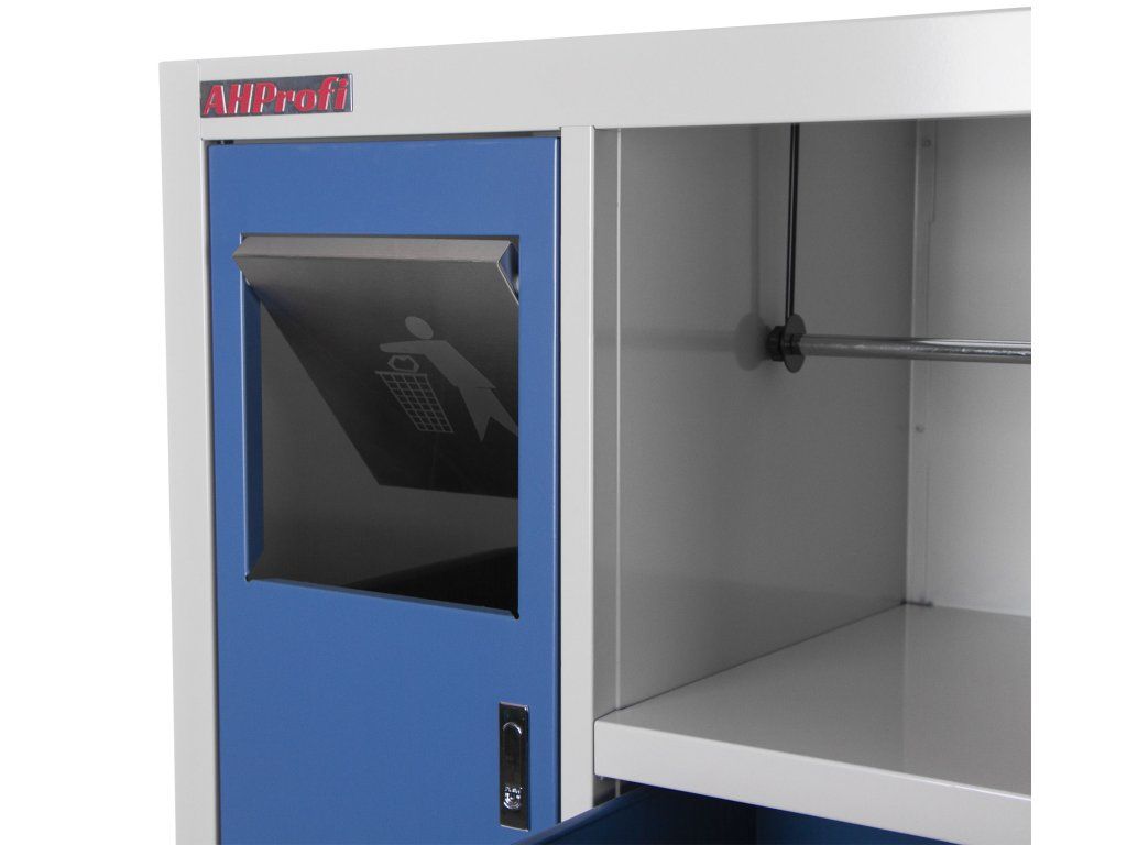 Celokovová dílenská skříňka se prodává i v rámci kvalitní PROFI 10ks sestavy dílenského nábytku TGS1300 a TGS1301. Skříňka obsahuje odpadkový koš a držák na role papíru, je vhodná do profesionálních servisů, dílen, ale také do garáží. Součástí balení není pracovní deska.