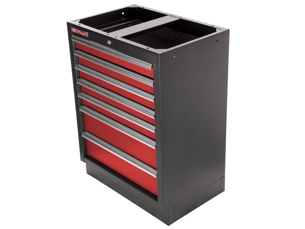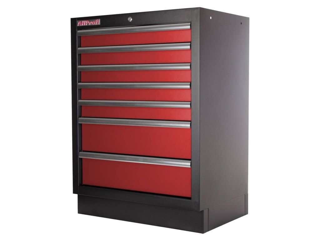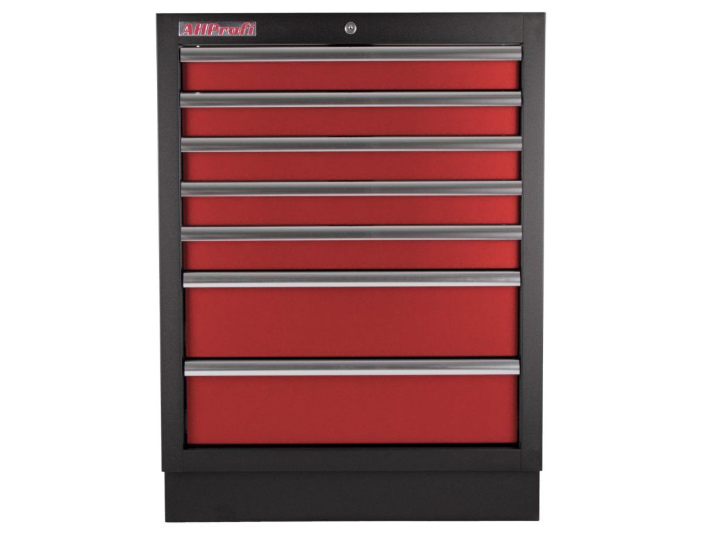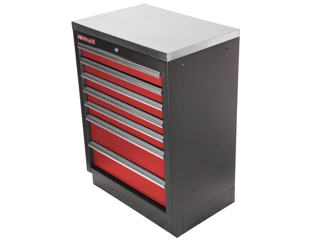 Celokovová PROFI dílenská skříňka s 7-mi zásuvkami je vhodná do profesionálních servisů, dílen, ale také do garáží pro uskladnění širokého sortimentu zboží i ručního nářadí, na které se pak nepráší a snáze se udrží přehledně uklizené na správném místě.