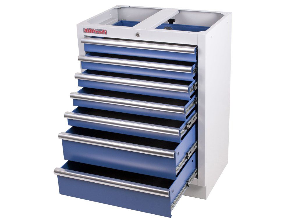 Celokovová PROFI dílenská skříňka s 7-mi zásuvkami. Prodává se i v rámci kvalitní PROFI 10ks sestavy dílenského nábytku TGS1300 nebo menších sestavách. Skříňka je vhodná do profesionálních servisů, dílen, ale také do garáží pro uskladnění širokého sortimentu zboží i ručního nářadí, na které se pak nepráší a snáze se udrží přehledně uklizené na správném místě.