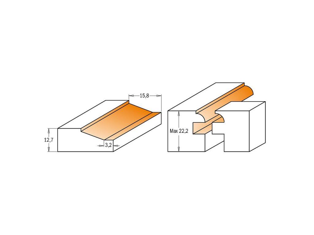 Použití: Pro výrobu výplní dvířek a zásuvkových čel. Nutno použít frézovací stolek.
