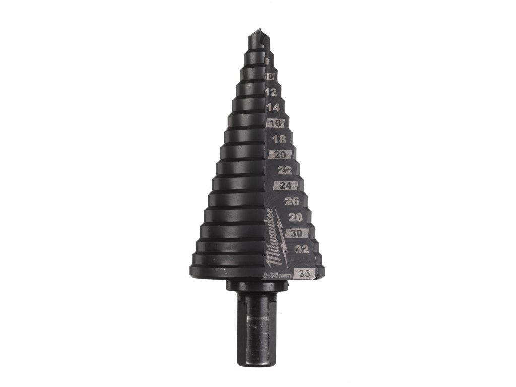 - Povlak na bázi nitridů hliníku a chromu (AlCrN) zvyšuje 10 × životnost nástroje ve srovnání se standardními stupňovými vrtáky MILWAUKEE®