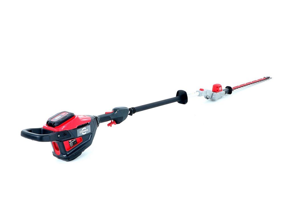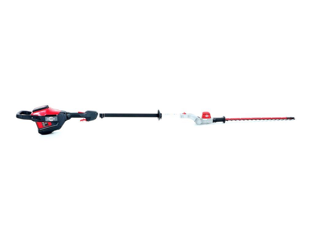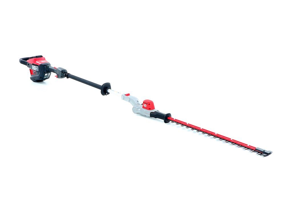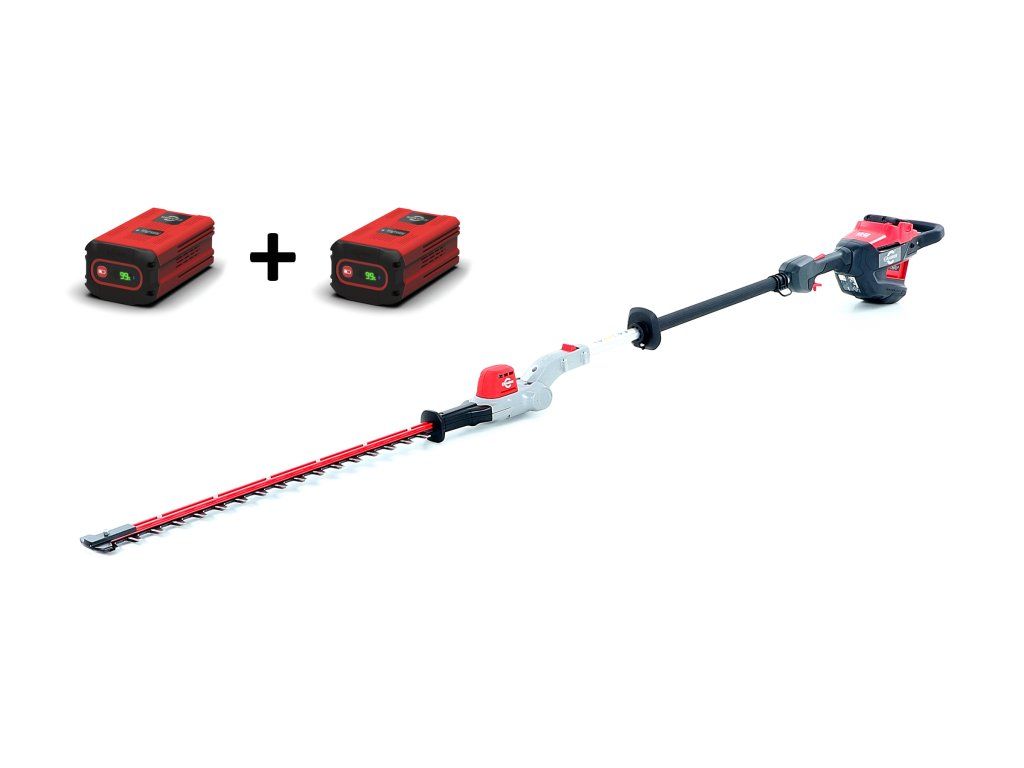 - Profesionální bateriový plotostřih s dlouhým dosahem a kloubovými dvojitými pístovými noži o délce 61cm a o celkové délce 2,3m
