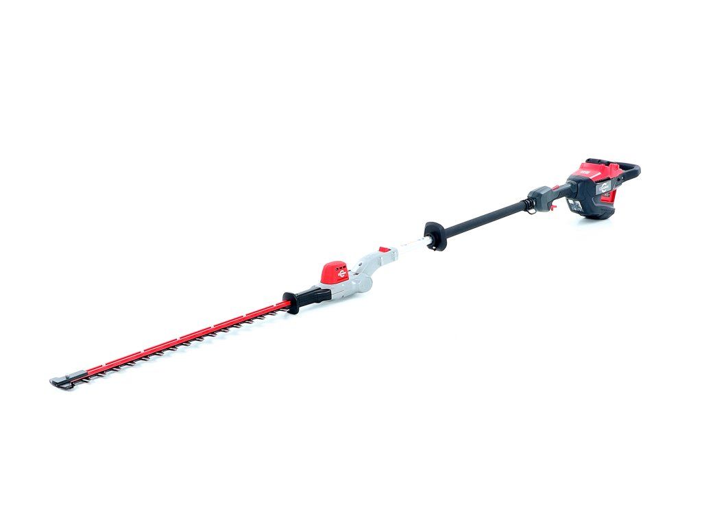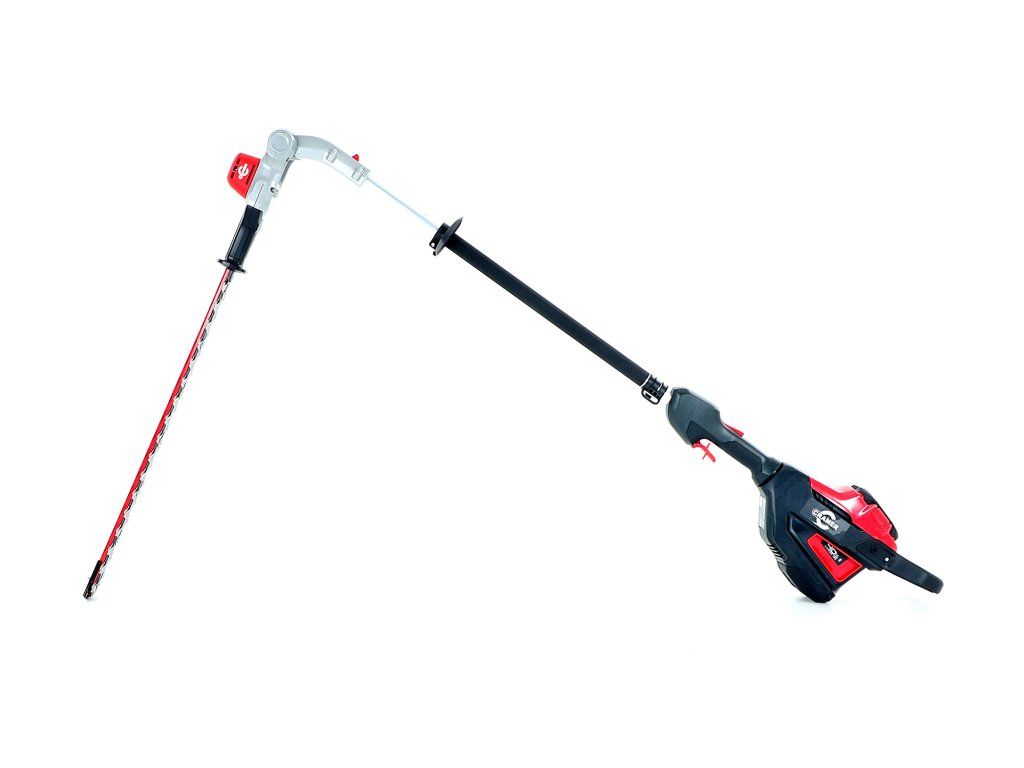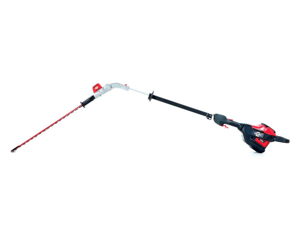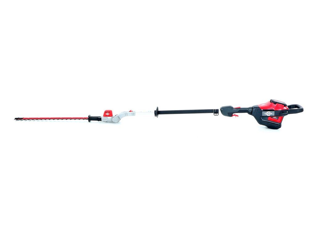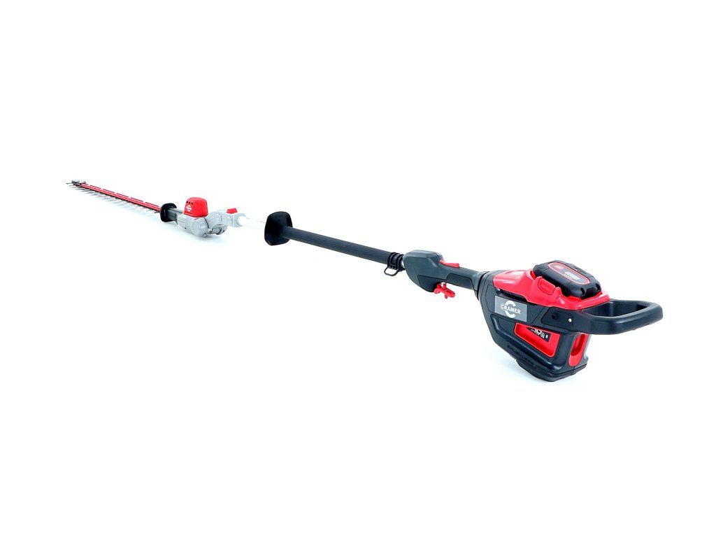 - Profesionální bateriový plotostřih s dlouhým dosahem a kloubovými dvojitými pístovými noži o délce 61cm a o celkové délce 2,3m