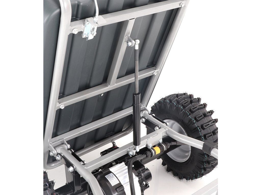 Pokud potřebujete přepravovat těžké nebo objemné předměty, jednoduše použijte extrémně stabilní bateriový motorový vozík Cramer 82V. Díky čtyřem kolům je velmi robustní a poskytuje úlevu pro vaše paže a záda, zejména na svazích a plošinách. Pro větší pohodlí a snadnou manipulaci lze návěs naklápět pomocí plynové tlakové pružiny. Díky bezkomutátorovému elektromotoru přepraví bateriový užitkový vozík vše bez hluku a emisí.