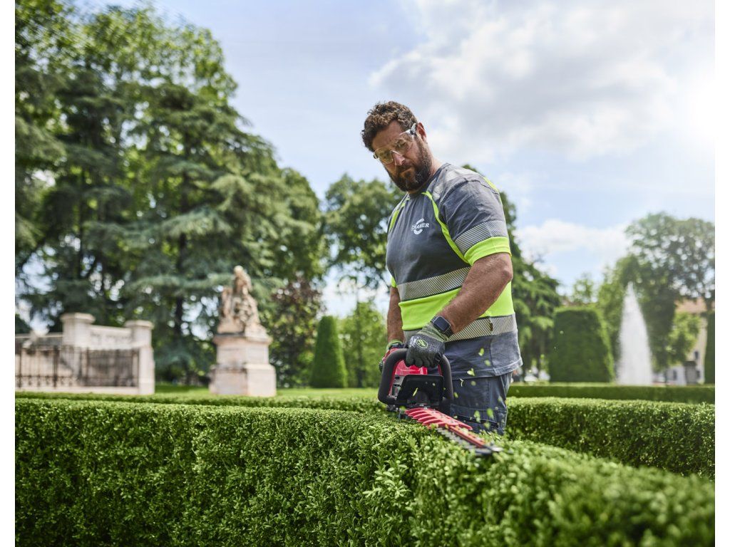 - Vysoce ergonomické s vyváženou hmotností baterie mezi přední a nastavitelnou zadní rukojetí pro snížení namáhání paží obsluhy