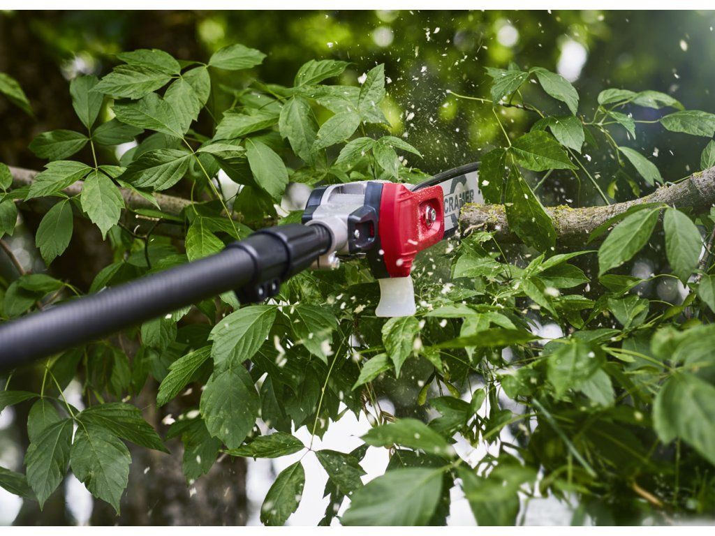 - Výkonná teleskopická bateriová pila pro profesionální použití, která konkuruje výkonem benzínu a krouticím momentem pro usnadnění nejnáročnějších prací