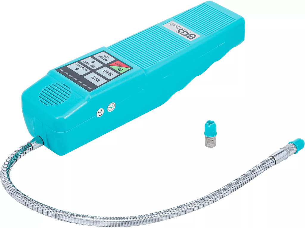 Detektor úniku chladicího média pro snadné vyhledávání úniků v klimatizačních systémech osobních a nákladních vozidel, ale také pro další typy klimatizací. Přístroj je kompatibilní s různými typy chladicích kapalin, jako jsou R134a, R12, R11, R500 a další. Při zjištění netěsnosti vydává optický a akustický signál a umožňuje nastavit citlivost dle potřeby. Přístroj má nepřetržitý pracovní režim a velmi rychlou reakční dobu.