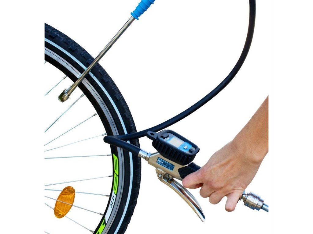 Přesná digitální hustilka určená ke kontrole a plnění pneumatik osobních vozidel, motocyklů nebo jízdních kol.
