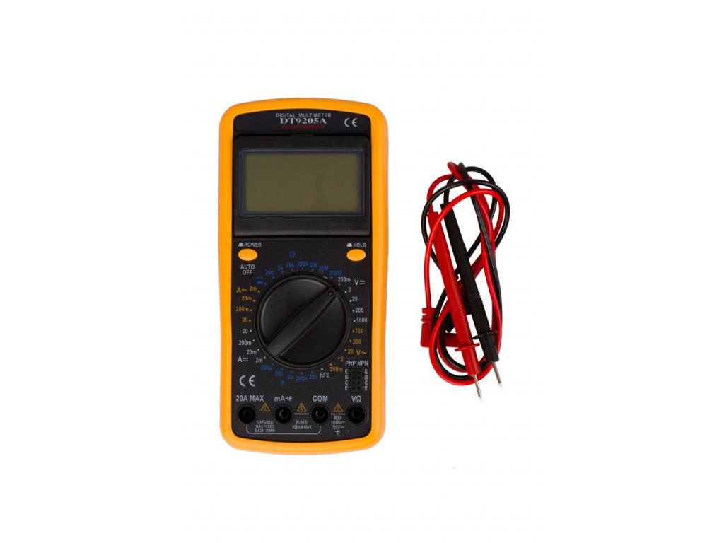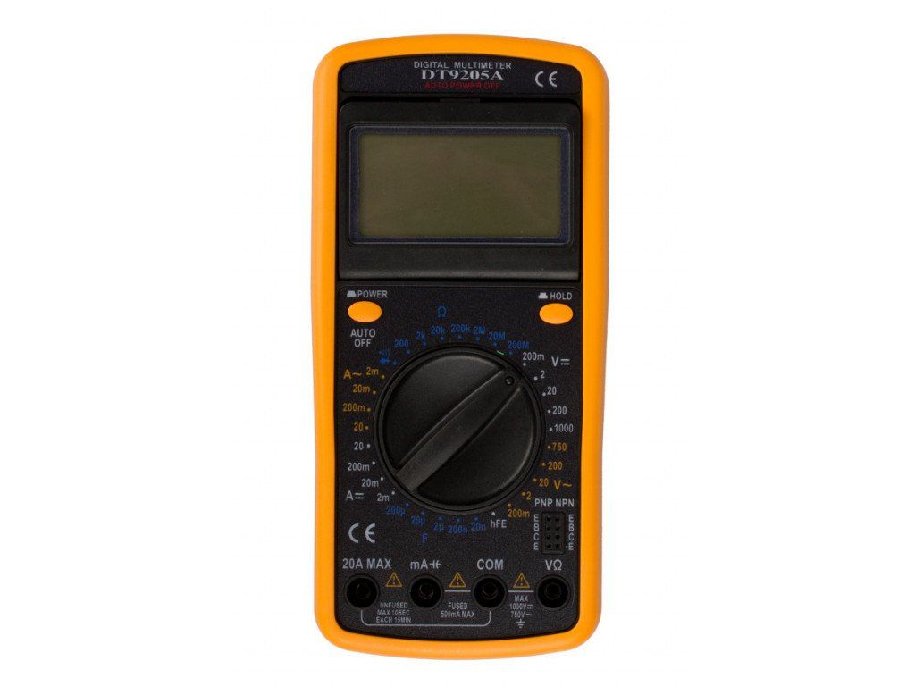 Multimetr měří hodnoty dle předvolené hodnoty otočným přepínačem. Měřit můžete AC/DC napětí a proud, odpor, test diod, tranzistoru hFE. Měřená hodnota se zobrazí na monochromatickém displeji o velikosti 3,5 digitu.