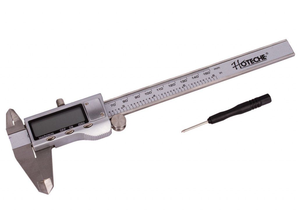 Digitální posuvné měřítko, tzv. posuvka či šuplera, značky Hoteche se stupnicí 150 mm vyniká tam, kde běžné metry a pravítka nestačí. Tenhle digitální šikula naměří vnitřní i vnější průměry či hloubky s přesností na dvě desetinná místa. Jedná se o skvělého parťáka, kterého ocení nejen profíci pro přesné a rychlé měření ve strojírenství, průmyslu, obrábění kovů či zpracování dřeva ale i kutilové pro precizní domácí měření.