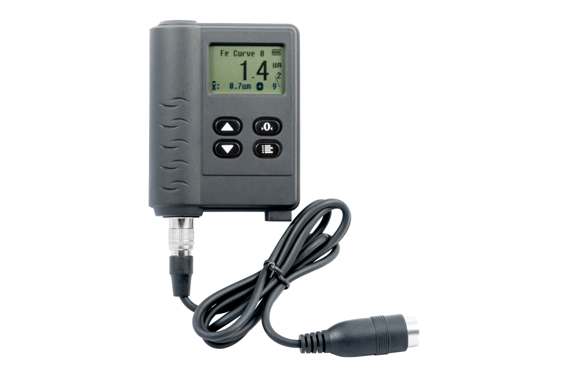 Na měření tloušťky vrstvy barev, povlaků, fólií Měření pomocí magnetické indukce Rozsah měření 0-1500mm Rozlišení: 0-999µm: 0,1µm, 1000µm: 1µm. Přesnost: do 100µm: +-1,5µm; 1000-1500µm: