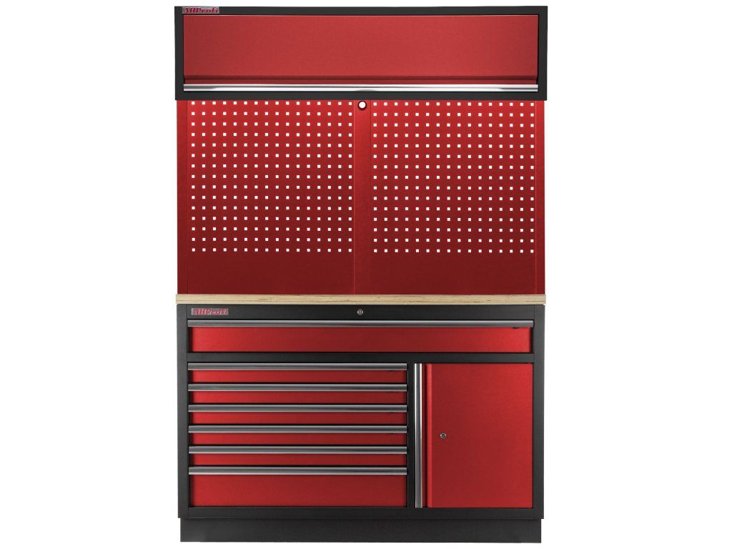 Sestava nábytku v sobě skrývá dostatečné množství úložného prostoru pro vaše nářadí, autotechniku i dílenské vybavení. V kombinaci s bytelnou pracovní deskou získáte multifunkční stěnu, se kterou vám půjde práce od ruky ve všech směrech.