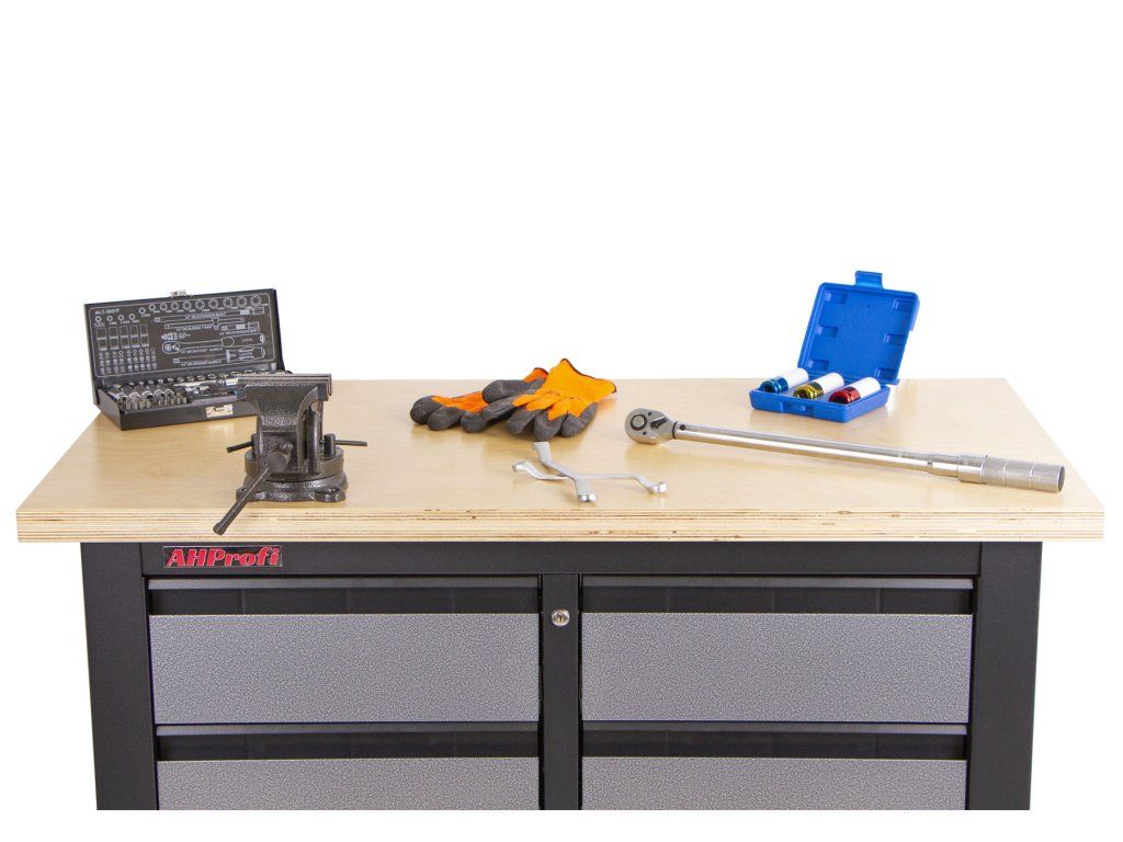 Na pracovní dřevěnou desku o rozměrech 1200 x 600 mm se vejde spousta používaného nářadí, jako je například gola sada nebo momentový klíč.