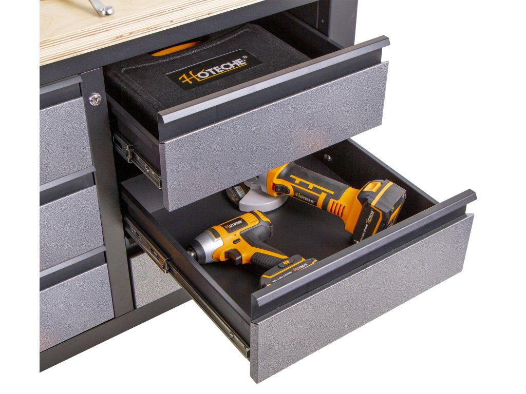 Do šuplíků můžete uskladnit nářadí jako je utahovák nebo třeba úhlovou brusku.