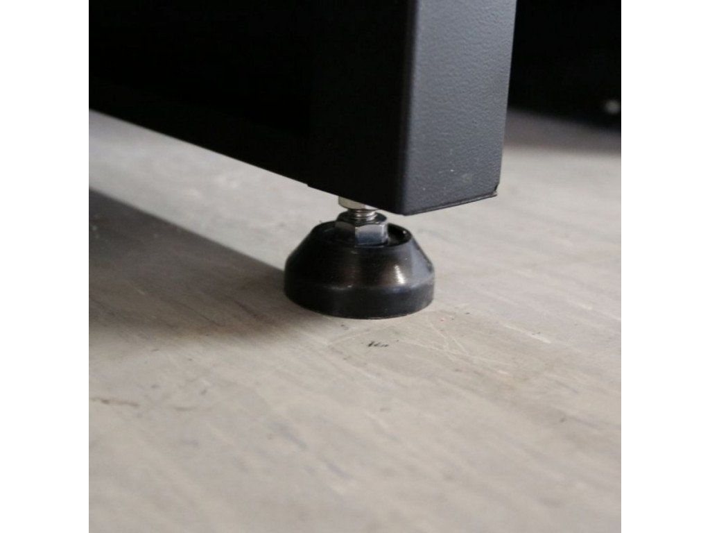 Konstrukce: pracovní stůl má pevný ocelový rám, podnoží včetně 4 nastavitelných patek (k vyrovnání případných nerovností podlahy), barevné